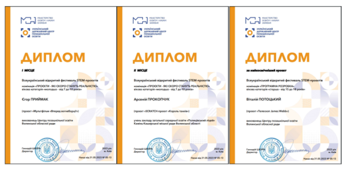 Відповідно до наказу Міністерства освіти і науки України у квітні-травні 2023 року вперше було проведено Всеукраїнський відкритий фестиваль STEM-проєктів, в якому взяли участь вихованці закладів позашкільної освіти України. Всього було презентовано 48 STEM-проєктів, які представляли 64 здобувача освіти, три з яких – представники Волині. Проведення Фестивалю дало можливість учасникам не лише презентувати свої роботи, а …