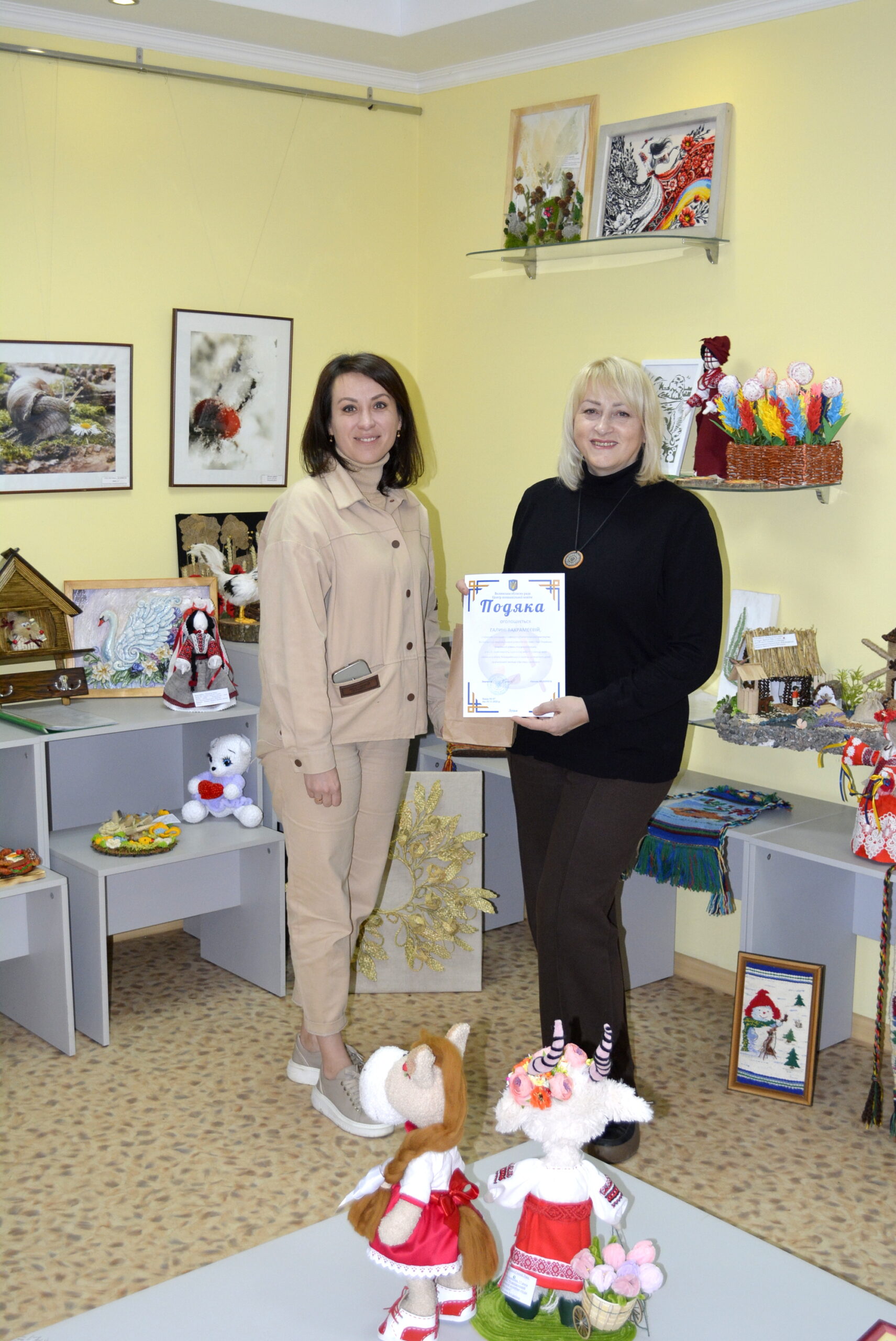 Директор Центру Оксана Філіпчук побажала членам журі плідної роботи та оголосила щиру подяку Галині Вахрамєєвій, старшому викладачу кафедри образотворчого мистецтва Волинського національного університету імені Лесі Українки, члену Національної спілки майстрів народного мистецтва України за професійне та незалежне оцінювання конкурсних робіт.